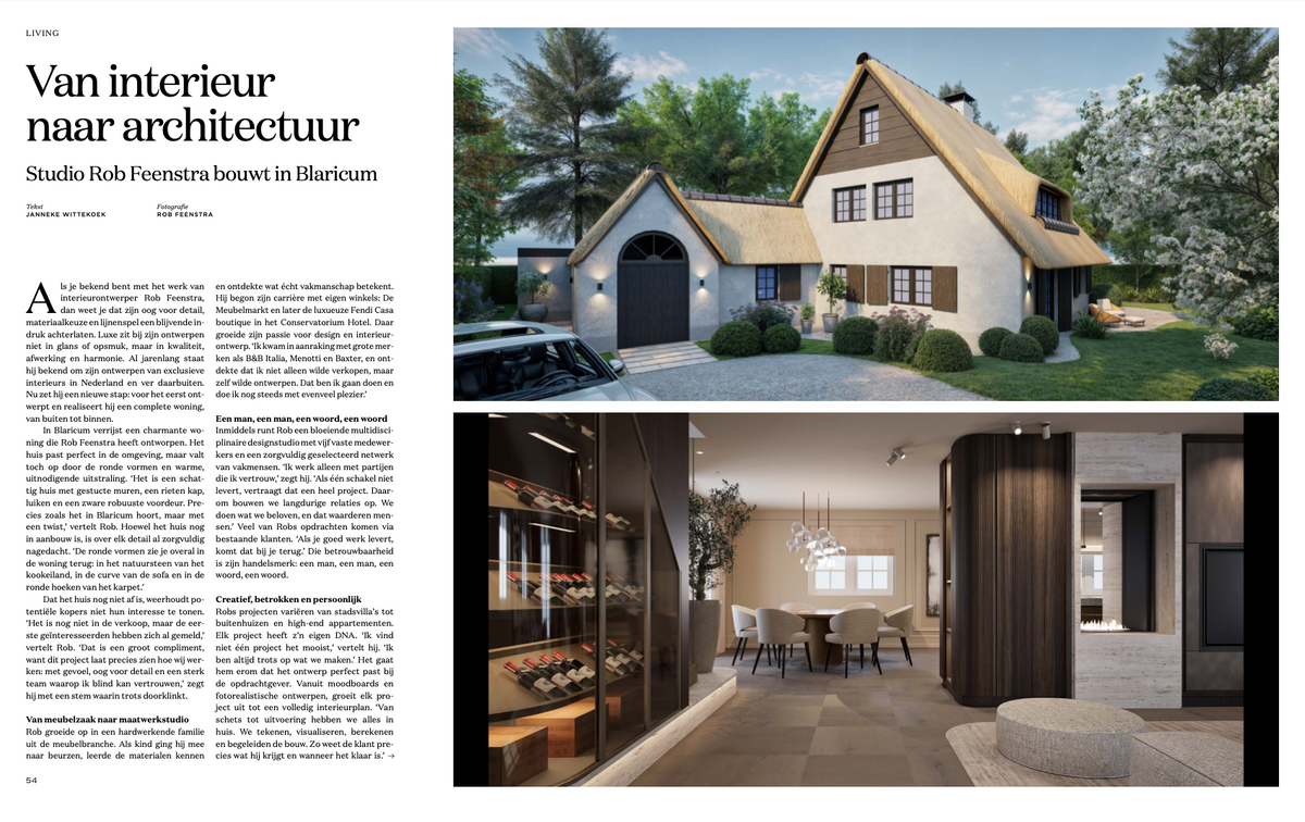With a charming home in Blaricum, Studio Rob Feenstra takes a new step by designing both the interior and the architecture. The project showcases his vision for holistic concepts and timeless elegance.