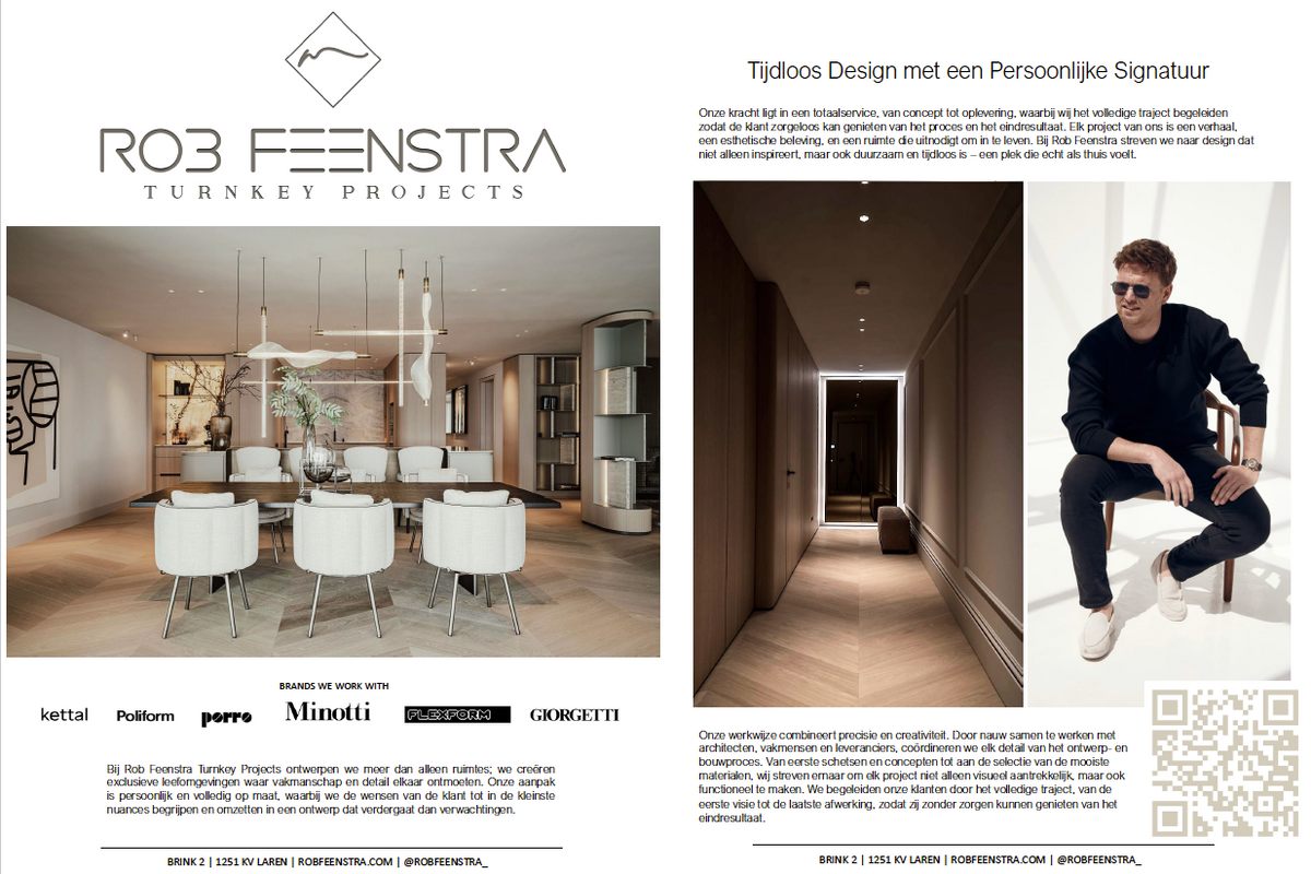 From Amsterdam to Dubai, Rob Feenstra’s interior creations are taking shape worldwide. His distinctive style, strong network, and client-focused approach position him as a leading name in luxury living.